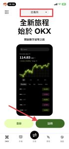 打开App进行注册,首页需选择交易所选项: