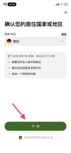 设置完之后确认居住国家地区,选择德国: