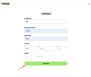 申请Wise帐户时要填写的个人信息如下: