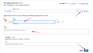 打开Cloudflare的域名的DNS添加TXT记录: