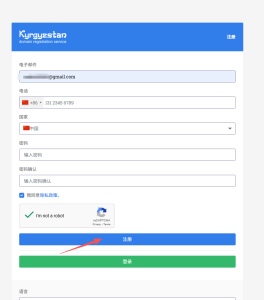 接下来输入自己的邮箱,使用谷歌邮箱,电话选择+86,输入自己的手机号码,国家选择中国,设置密码: