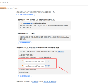把Cloudflared的两个服务器复制添加到cctld域名服务器上: